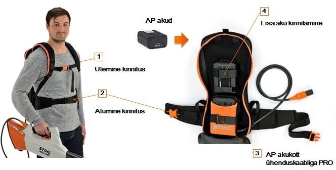 Tugev ja ergonoomiline akude seljakott STIHL liitiumioonakute hoidmiseks, et muuta töö veelgi lihtsamaks.