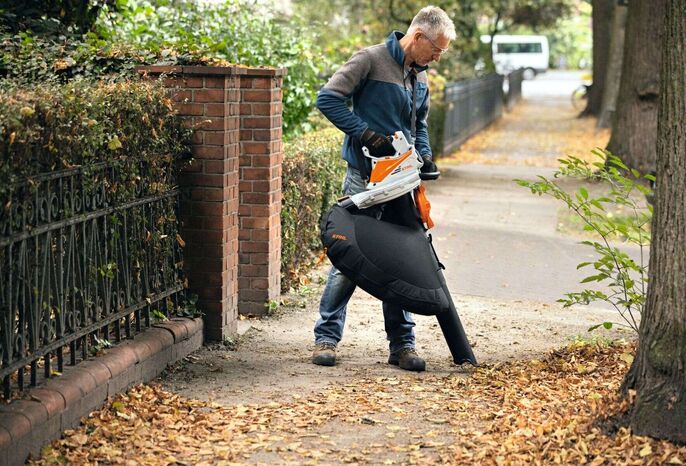 Imeb tõhusalt lehed, niitmisjäägid ja lõigatud põõsa- ja hekivõrsed purustades need otse 55 liitrisesse kogumiskotti. Koti eemdalamine võtmevabalt ja tühjendamine on ülilihtne. Purustamine on kiire ja tõhus tänu metallist lõiketeradele (purustussuhe 1:14). Imemisvõimsust saab pidevalt reguleerida vastavalt töö iseloomule ja vajadusele.